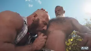 Muscular Bruce Beckham relentlessly bareback with Mark Vallant