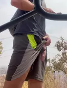 Description: boy with good-sized furry man-meat showcasing off on public street