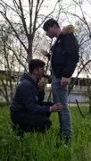 2 torrid fellows with fat cocks smoking, jerking and deep-throating outdoors