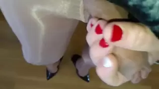 Description: Crossdresser crossdresser in amateur shiny nude pantyhose and high masturbation heels