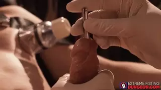 Description: Master Ron turns into a sadistic doctor for the third part of his experiment. Fastened on a gynecological chair,