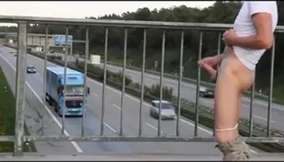 Description: auf der Autobahnbrcke den steifen Schwanz gewichst sodass alle sehen konnten wie das Sperma in hohem Bogen gespritzt ist.