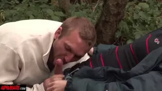 Description: Gay-for-pay boy gets his trouser snake deep throated in the woods: dt, rump-gobbling, ass-fuck and more at Alphamales.com