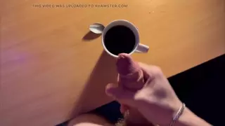 Milking off a yam-sized pink cigar in white socks and jizz in my coffee