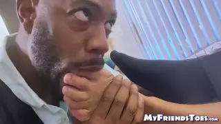Description: Hunky bearded boss makes his handsome employee smell his shoes and feet before licking him all over.