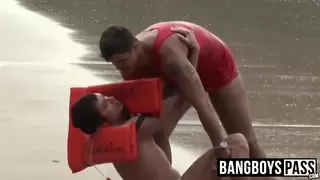 Description: Jock sucks his savior's cock and bangs him after he saved him from drowning, and they both enjoy it.