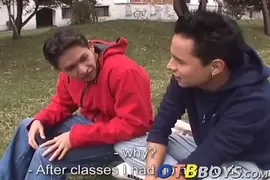 Description: Latinos Deivis, Emanuel and Damian hook up in the park and decide to go have a kinky threesome that involves the use of some hand cuffs.
