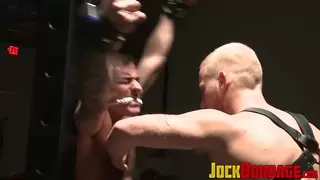 Description: Luke is learning quickly how to use the pain of electro shocks to torment the hairy dom he now has under his control.