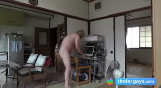 Mature Japanese Gay Man Strokes Small Asian Cock