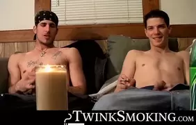 Hardcore stroking and smoking session on the couch by straight buddies Chain and Benz