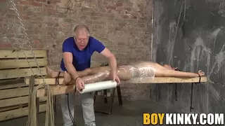 Description: Bound young twink Justin Blaber enjoys a skillful handjob from his mature master Sebastian Kane!