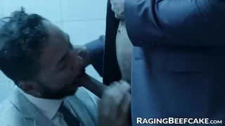 Description: Office coworkers Mateo Zagal and Milo Madera compare dicks in the restroom before engaging in passionate oral and intense bareback fucking against counters.