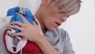 Foot fetish jock Cal jerks off while hot twink sniffs him