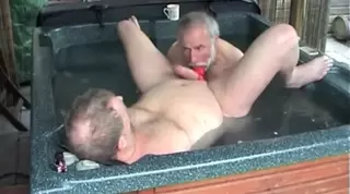 Description: Two hot daddies relax in the jacuzzi, but things quickly heat up as they engage in passionate kissing, leading to a steamy suck and fuck session.