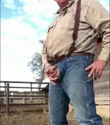 Description: A hairy, mature man with a bear-like build, likely a farmer, is out in his field when he starts to masturbate and urinate. He is unaware that he is being watched by a voyeur, who films the exhibitionist act.