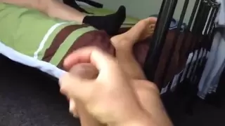 Description: Our two roommates are home alone and one of them decides to jerk off in front of his roommate. He slowly strokes his hard cock as his roommate watches, eventually shooting his load all over the place.