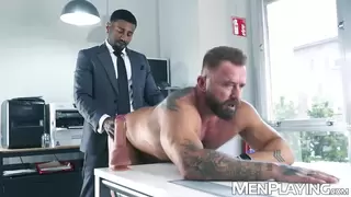 Description: Markus Stone an executive,commands his assistant Braxton Cruz to fuck him with his BBC dominating him and submitting to the pleasure of his thick black cock.