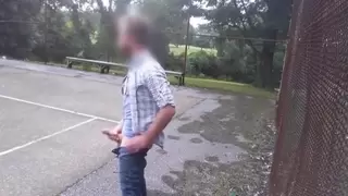 Hot guy jerking his cock at the park