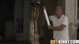 Description: Ariel Black has gotten himself in quite a pickle. He is bound, hanging from the ceiling with Sebastian Kane approaching with a whip. Good luck twink!