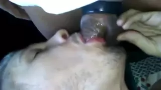 Daddy trucker dumps a quick load in Chubby Boys mouth