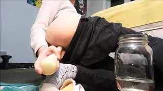 Doing an enema while wearing a Holy Trainer.