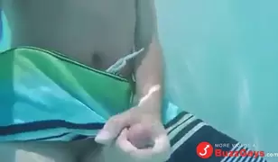 Description: A horny man decides to take a dip and stroke his big cock by the poolside, not caring if anyone is watching. He shoots a big load of cum, moaning loudly, not giving a damn about the public setting.
