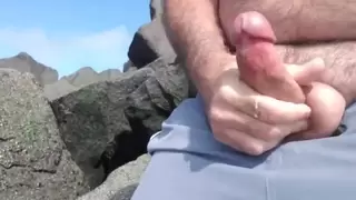 Went for walk on beach, A few people around, Got hard and jerked off until I came, Big close up cum shot,