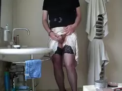 Description: Demurely crossdresser amateur dressed sex toy crossdresser wanking and cumming