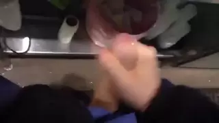 A bartender jerks off at work behind the counter while customers are in the bar, Awesome,