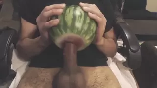 Arrogant masculine TimonRDD rock hard screws a watermelon with a gigantic fur cove...