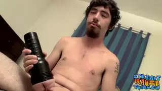 Description: Straight amateur Samuel Phatom uses fleshlight to tug his cock up and down, before cum blasting solo in a homemade video!