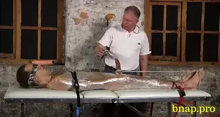 Description: Super-Fucking-Hot super hot faggot dude gets thrilled by a ultra-kinky restrain bondage act