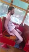 Risky BUS RAIL! Exhib twunk unload a giant fountain in the backseat of a bus!