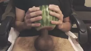 Arrogant masculine TimonRDD rock hard screws a watermelon with a gigantic fur cove...