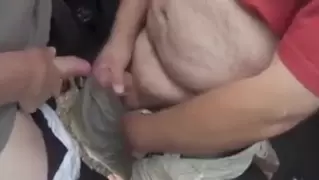 Old stud has joy fellating a junior men trunk in the park
