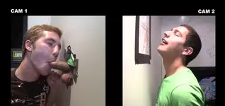 Cumthirsty gay stuffs his throat with pecker through a hole