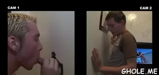 Playsome gay twink stuffs mouth with cock through a gloryhole