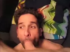 Hot teenage guy receives blowjob from mature fat cock sucker