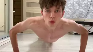 Russian boy does a exercise at home and gets highly super-naughty and jacks off hi...
