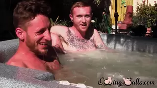 Inked ginger homo leaves jacuzzi to jack off dick with lover