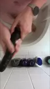 Steelwood303 rides and fucks his dildo in the shower until he cums