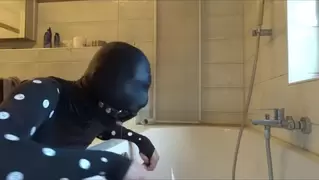 Black Guy Draining Out Groaning Pop-shot While Dressed in G-string, Schlong Ring, ...