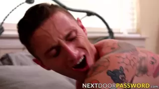 Description: Enticing hunk bends over and takes a cock deep down inside his ass hole in doggy style while moaning loudly.