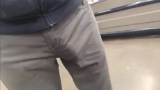 Description: luving freeballing in the shop. Got some fresh trousers that display my erection adorably