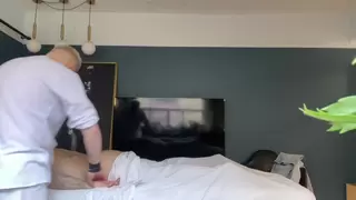 Nasty father gets rock-hard during rubdown and tempts the massagist.