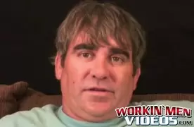 Description: Chubby mature stud smokes during an interview before jerking off and creaming all over his hand.
