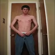 Skinny nerd Jack Flynn jacks massive cock and splashes cum on his feet