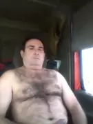 Daddy trucker dumps a quick load in Chubby Boys mouth