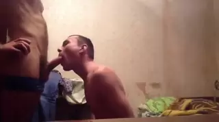 Homemade video of sexy Russian lad deepthroating and gulping big cock of his friend.